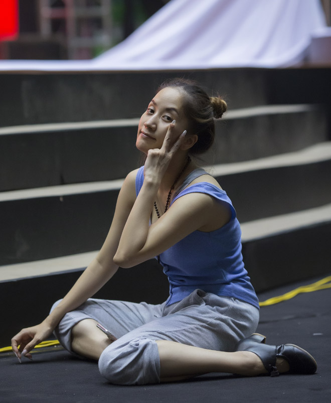 Trong khi đó, ông xã kém tuổi bận rộn bàn bạc kịch bản, thay vợ quan sát chung các tiết mục của nhóm vũ công.