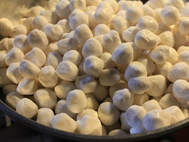 - Bước 3: Sau đó lấy một ít bột năng, ấn dẹt rồi đặt miếng cùi dừa vào giữa, nặn các mép kín lại, vo tròn rồi để ra đĩa. Làm tương tự cho đến khi hết cùi dừa và bột.