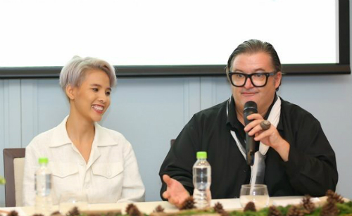 Ca sỹ Vũ Cát Tường cùng chuyên gia về mùi hương Luc Berriet đến từ Thụy Sỹ chia sẻ về sản phẩm nước hoa.