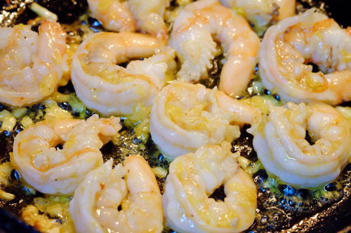 – Khi tỏi đã dậy mùi thơm, bạn cho tôm đã ướp vào đảo đều cho đến khi tôm săn lại.