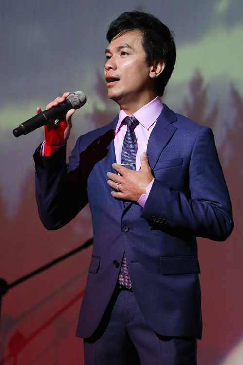 Nam ca sĩ nhận quà khi đang biểu diễn cùng Phi Nhung.