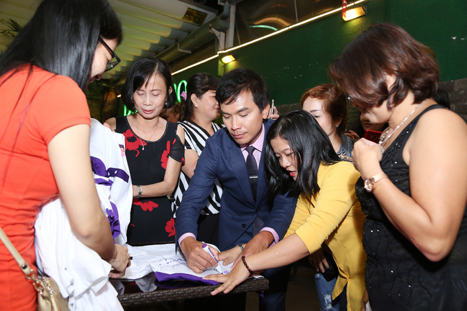 Anh chụp ảnh kỷ niệm và ký tặng người hâm mộ.