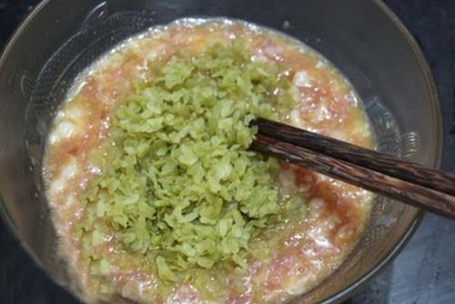- Bước 1: Thịt vai rửa sạch, băm nhỏ. Sau đó cho vào bát tô cùng trứng và một chút gia vị, hạt tiêu khuấy đều lên.