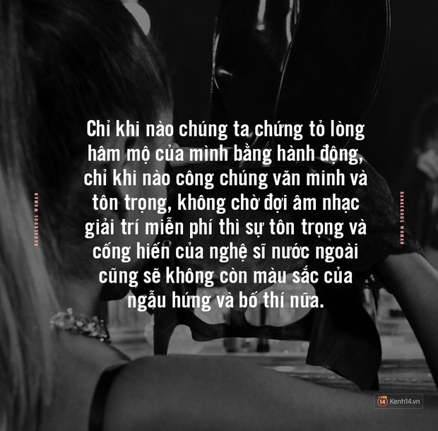 Tôi không biết lý do thực sự buổi biểu diễn không thể diễn ra là gì. Tôi không biết nguyên nhân nào thực sự làm rất nhiều người hụt hẫng, bần thần, chưng hửng và thậm chí tổn thương. Nguyên nhân nào khiến cho cả 1 ekip đã chuẩn bi đã cố gắng để đưa Ariana về Việt Nam phải gánh chịu áp lực mắng chửi từ nhiều phía, giấc mơ đã xa vời lại càng thêm lắm ổ gà trắc trở.