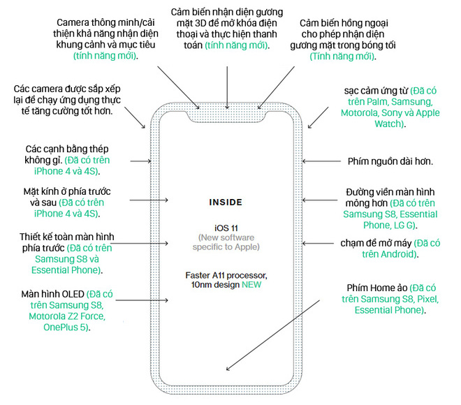 Apple đang chuẩn bị ra mắt ba chiếc iPhone mới trong tháng tới. Một trong các model đó, một thiết bị cao cấp hoàn toàn mới, với những thay đổi đủ để làm nên một trong những lần nâng cấp lớn nhất từ trước đến nay cho iPhone trong lịch sử 10 năm ra mắt của nó. Với một màn h́nh sắc sảo hơn chiếm gần như trọn vẹn mặt trước, Apple đă thử nghiệm việc loại bỏ hoàn toàn phím Home, bằng các thao tác điều khiển mới cho các tác vụ như đi tới menu ứng dụng chính hay vào chế độ đa nhiệm.