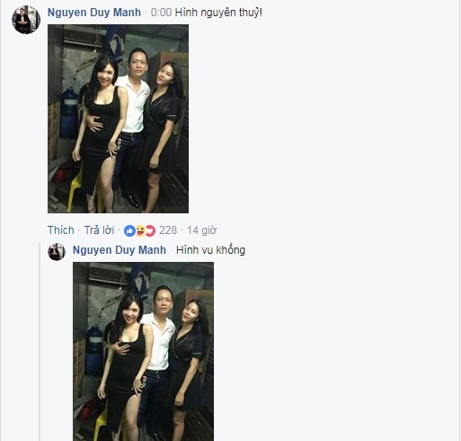 Trước những ý kiến trái chiều từ phía dư luận, trên trang facebook cá nhân, Duy Mạnh đăng tải hình ảnh "nguyên thủy" và hình ảnh "vu khống" để tự thanh minh cho mình.