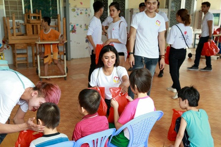Người đẹp gây ấn tượng bởi nét hồn nhiên đáng yêu, sự chân thành, gần gũi khi đến thăm, tặng quà và chia sẻ với các bạn nhỏ tại các trung tâm nuôi dưỡng trẻ mồ côi, khuyết tật.