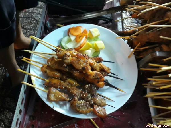Cũng là món nướng nhưng thịt xiên ở đây chắc, ăn giòn, ngọt và có mùi thơm rất riêng, mùi thơm của thịt nướng vàng, của mè và sả băm quyện lại, ăn hết xiên này lại muốn thêm que khác.