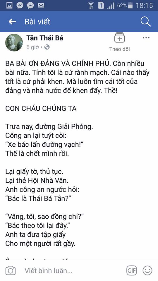 Old  Default Nhà văn Thái Bá Tân gây sốt với bài thơ ơn Đảng, yêu công an, yêu bác Phúc