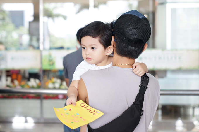 Ra phi trường từ sớm nên Phan Hiển và con trai phải đứng đợi khá lâu.
