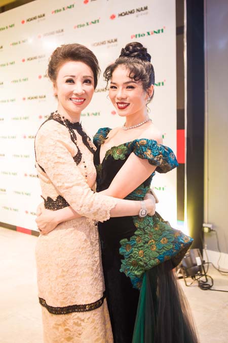 Lệ Quyên trông già hơn cả doanh nhân Vũ Thúy Nga với kiểu tóc xoăn cùng chiếc váy xòe con Công