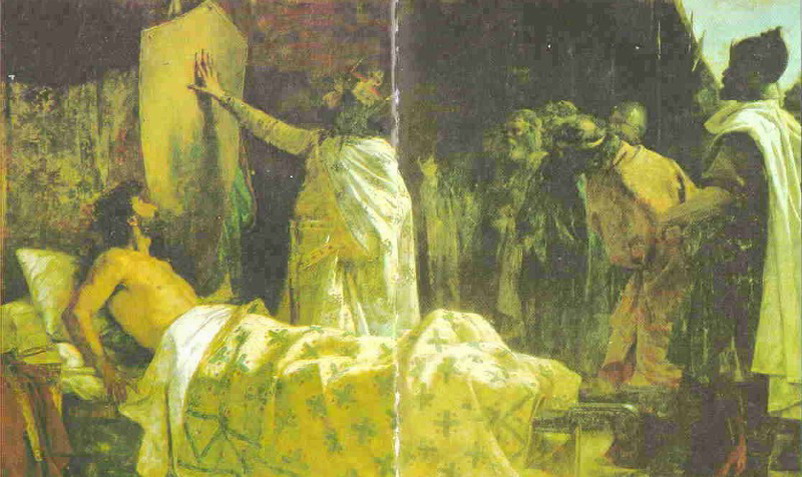 Vào cuối thế kỷ thứ 9, hơn 100 vạn quân rợ Moor (1) tấn công Marca Hispanica (2), đế chế Carolingia, hoàng đế Charles the Bald (3) đem đại quân cự địch nhưng đánh trận nào thua trận nấy. Một lần đánh trận Charles the Bald bị bao vây chặt, tưởng chết tới nơi, thì bỗng dưng một hiệp sĩ có mái tóc dày xông vào vòng vây, đi đến đâu chém bay đầu giặc tới đó. Giặc thấy thế hoảng loạn, vỡ đội hình. Cũng vì thế hiệp sĩ tóc dày cứu được hoàng đế, tuy nhiên anh cũng bị dính nhiều vết thương.