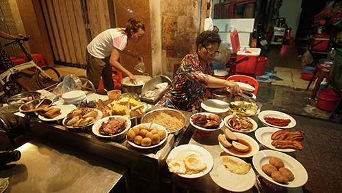 10 giờ đêm, bà Bảy cùng người nhà vẫn rôm rả những câu chuyện hàng ngày trong lúc phục vụ thực khách. Bãi rác nằm ngay phía trước tỏa mùi khó chịu, giá cơm cao ngất ngưởng, mà thực khách vẫn vào ra tấp nập.