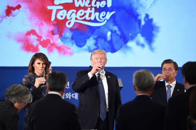 Ngày hôm sau, vợ chồng Tổng thống Mỹ lên đường sang Hàn Quốc, điểm dừng chân thứ hai trong chuyến công du châu Á - Thái Bình Dương của ông Trump.