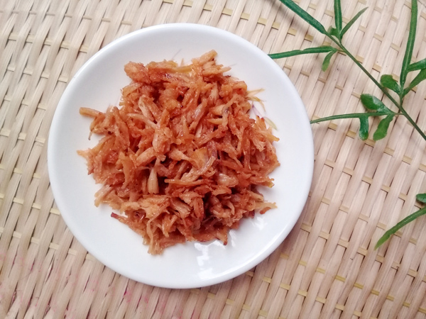 Món thịt xé sợi gần giống ruốc với cách chế biến đơn giản nhưng lại rất ngon. Từng miếng thịt đậm đà vị mặn ngọt lại hơi cay cay hấp dẫn vô cùng. Bạn có thể ăn kèm với cơm nóng hay cùng các món cháo cũng sẽ ngon lắm đấy.