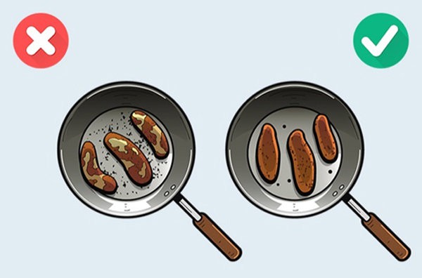 Để tiết kiệm thời gian, nhiều chị em đã "tống" rất nhiều thịt, thậm chí là hết chỗ thịt mình cần chiên vào chảo. Đây cũng là sai lầm phổ biến mà nhiều người mắc phải.