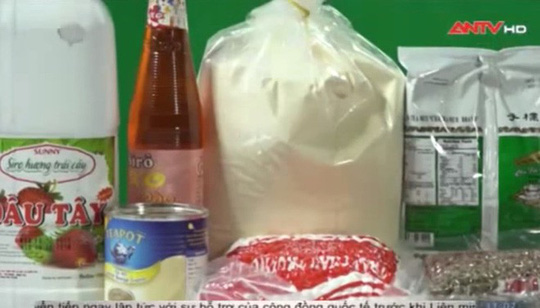 Nguyên liệu để làm trà sữa Trân châu đều có giá rẻ (ảnh cắt từ clip).