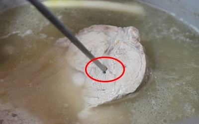 Cách kiểm tra thịt đã chín chưa bằng mẹo chọc đũa vào thịt từ lâu đã được các bà các mẹ truyền lại. Tuy nhiên, bạn đừng nôn nóng mà chọc đũa hay lật thịt nhiều lần trong khi luộc, rán bởi tất cả chất ngọt và hương vị trong miếng thịt sẽ bị tan ra, khiến chất và mùi vị của thịt sẽ không còn được ngon nữa.