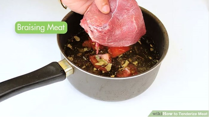 -Dùng một chiếc búa chuyên dụng để đập thịt, thịt sẽ mềm, tơi, dễ nhai hơn rất nhiều. Nếu không có búa bạn có thể sử dụng một con dao bén để cắt thịt thành những đường dài và mỏng, chú ý không được cắt quá sâu sẽ làm nát thịt.