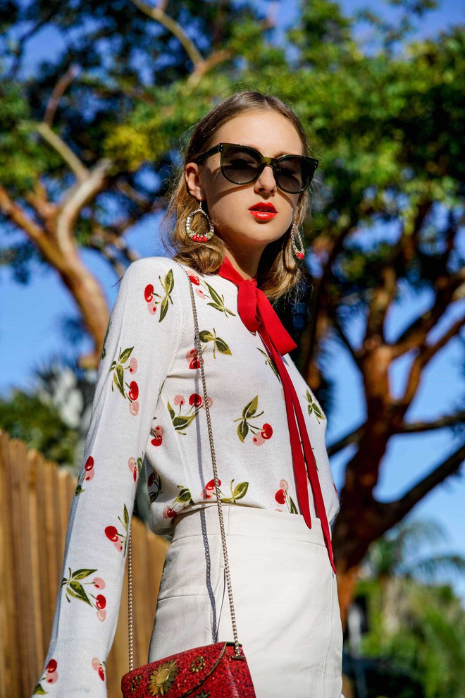 Không quá mềm mại điệu đà, nhưng kiểu họa tiết hoa quả có chút gì đó nổi bật, tràn đầy nhiệt huyết mà vẫn ngọt ngào, tươi mới cho trang phục mùa hè.