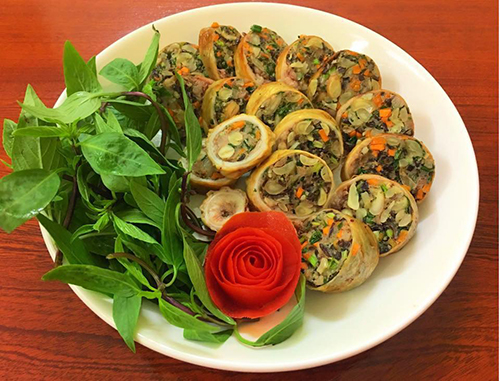 - Hành khô bóc vỏ thái nhỏ. Hành lá, rau răm, rau húng rửa sạch thái nhỏ. Mộc nhĩ ngâm nở, rửa sạch thái nhỏ. Sau đó trộn tất cả nguyên liệu trên lại cùng 1 thìa dầu ăn, chút hạt tiêu và hạt nêm. Trộn thật đều.