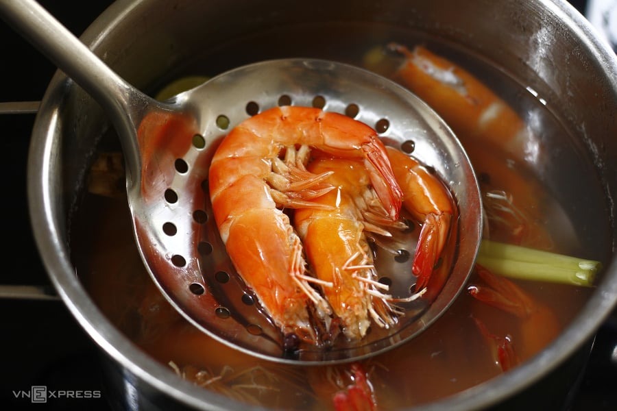Thêm một chút muối và rượu trắng khi luộc tôm giúp ngon hơn