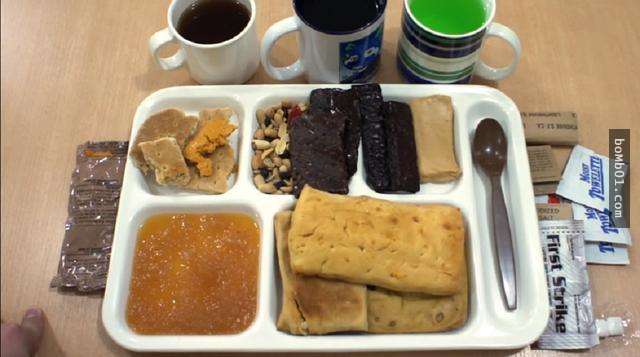 4. Không quân Mỹ: Một loạt các loại hạt, bánh quy mặn và ngọt, bánh mì, bơ đậu phộng, bánh mì dài cao năng lượng, chè đen. Dường như các món ăn đều có hàm lượng calo cao.