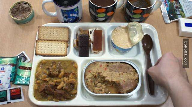 3. Nga: Đậu Hà Lan, thịt hộp, thịt ăn trưa, cá đóng hộp, trà tan, đồ uống cô đặc, nước sốt, trứng cá muối, rau. Nhìn vào lượng lớn thức ăn này, hẳn là lính Nga có rất nhiều sức mạnh để chiến đấu.