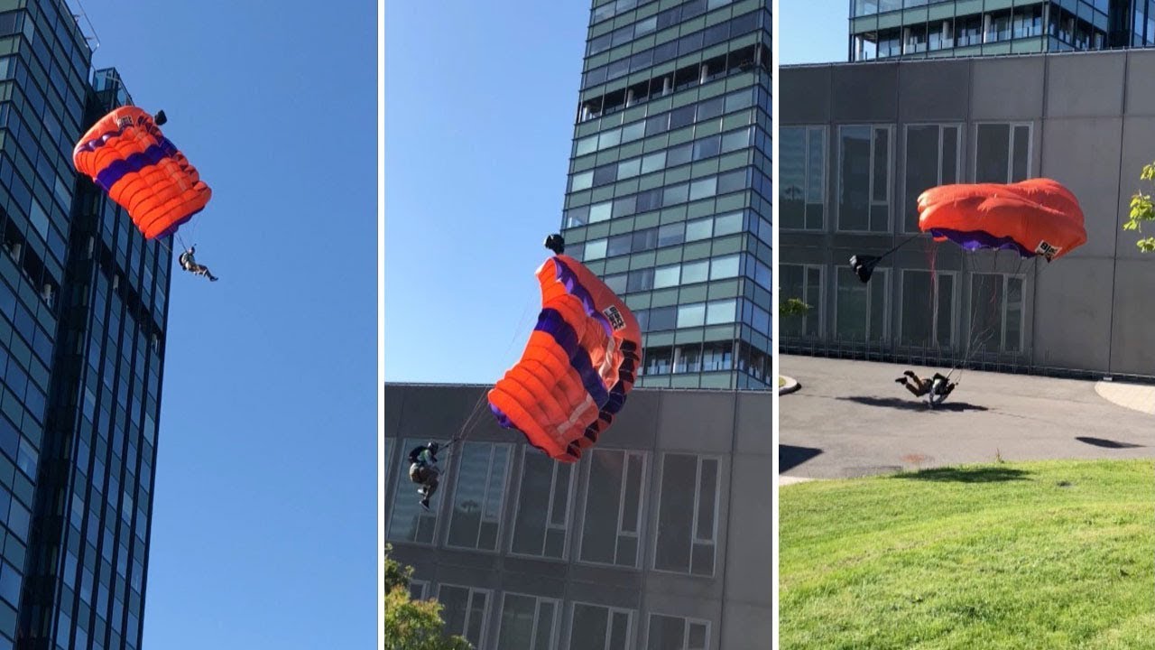 Clip sốc: Liều mạng nhảy dù từ cao ốc, gặp ngay sự cố đầy đau đớn