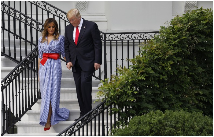 Trong một bữa tiệc ngoài trời tổ chức cho gia đình các quân nhân trên bãi cỏ tại Nhà Trắng nhân kỷ niệm ngày Độc lập Hoa Kỳ, bà Trump đã lựa chọn chiếc váy Ralph Lauren kẻ ô trắng – xanh, và kết hợp với một chiếc dây lưng màu đỏ của Alexander McQueen. Và người ta đều biết Ralph Lauren là một thương hiệu “đặc Mỹ” truyền thống.