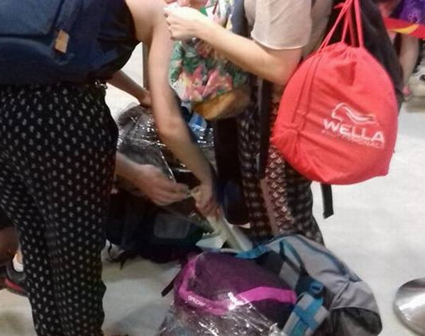 Tấm hình này được tôi chụp vào lúc 4 giờ 30 sáng ngày 16-2-2019 tại ga đi trong nước sân bay quốc tế Tân Sơn Nhất. Một nhóm du khach nước ngoài đang tranh thủ dùng băng dính ny lông để cuốn chặt các ba lô của mình. "Chúng tôi sợ bị trộm. Thật khủng khiếp. Mong sao ba lô của chúng tôi sẽ không bị rạch, chúng tôi không bị mất trộm".