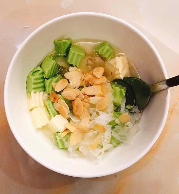 Cách làm hạn nhân và hoa quả ăn kèm trong chè khúc bạch: