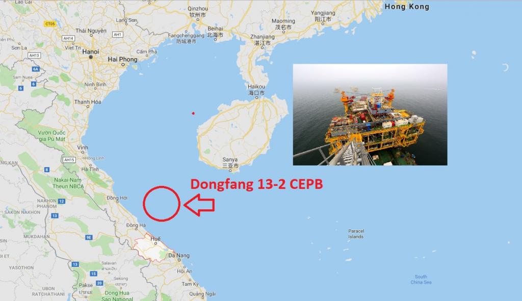 Theo đó trong khoảng giữa ngày 9-4-2019 và 10-4-2019 Trung Quốc đưa giàn khoan mang tên Dongfang 13-2 CEPB tới sát thành phố Huế và Đồng Hới để khai thác dầu và khí đốt. Trung Quốc khẳng định đây là vùng biển đặc quyền của Trung Quốc. Trước thông tin nhậy cảm như vậy nhưng toàn bộ báo chí trong nước đều bị cấm đưa tin.