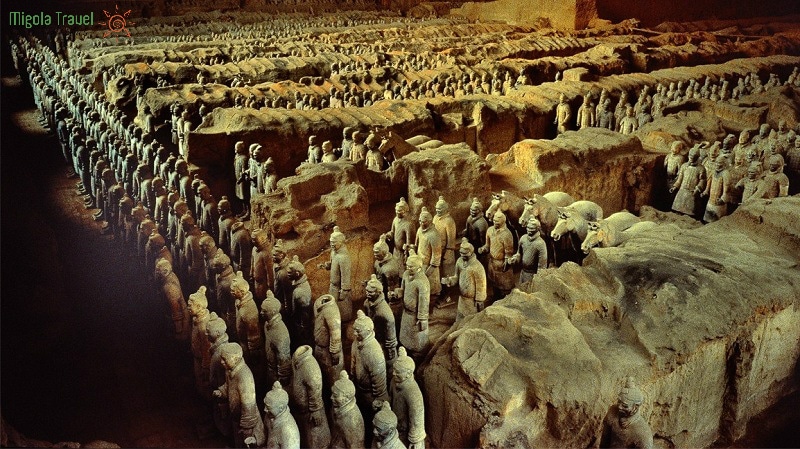 Đội quân đất nung bên trong lăng mộ Tần Thủy Hoàng.