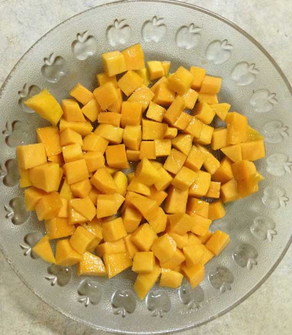 1/3 phần xoài còn lại thái nhỏ hạt lựu.