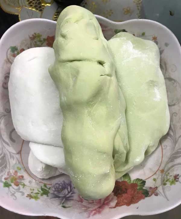 Trân châu lá dứa các bạn cho nhiều nước lá dứa chút thì sẽ lên màu như hình, ngoài ra lớp bột mỏng thì thấy lớp nhân dừa bên trong sẽ đẹp mắt hơn rất nhiều.