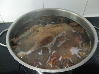 Bước 5: Sau khi thịt xương chín thì vớt thịt ra, tiếp tục cho thịt vịt vào hầm, đổ thêm vào đó một ít nước và hầm lửa nhỏ cho đến khi thịt vịt mềm. Nên tận dụng nước dùng để trụng sơ cải thìa cho chín, sau khi thịt chín cho vào một ít muối, hạt nêm, đường và nêm nếm cho vừa khẩu vị.