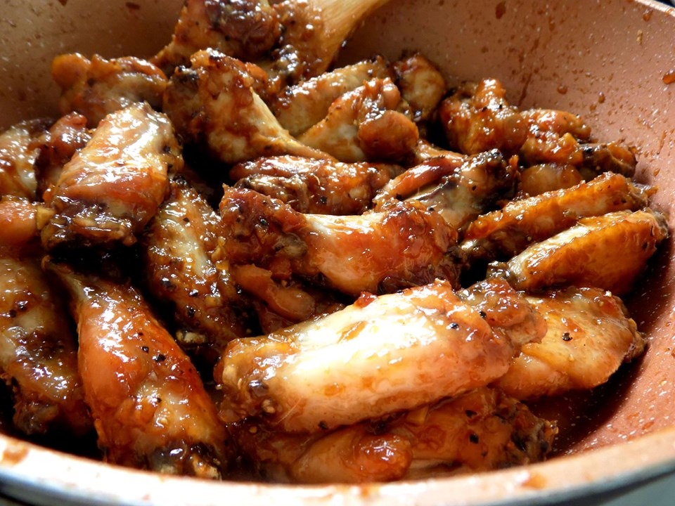 Bước 5: Khi nước mắm sôi nhẹ và có chút độ sánh thì bạn hãy cho cánh gà chiên (bước 3) vào đảo đều vài phút để gia vị nước mắm bám quanh các cánh gà mới tắt bếp.