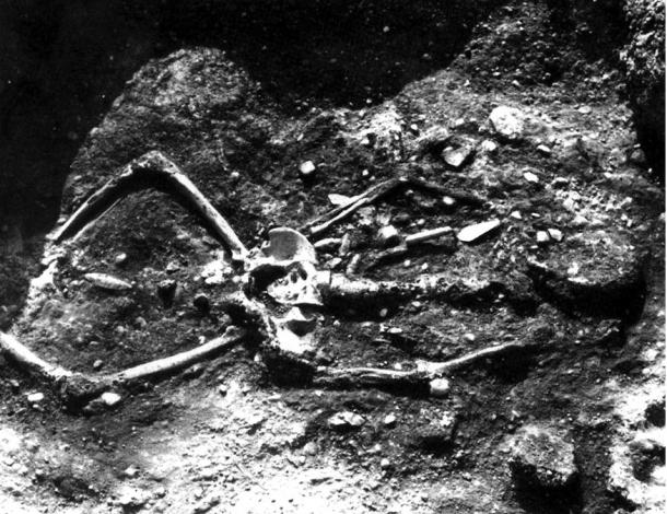 Bộ xương dài 2,13m từ gò đất Serpent đã bị cắt mất phần dưới đầu gối. (Ảnh: Jeffrey Wilson)