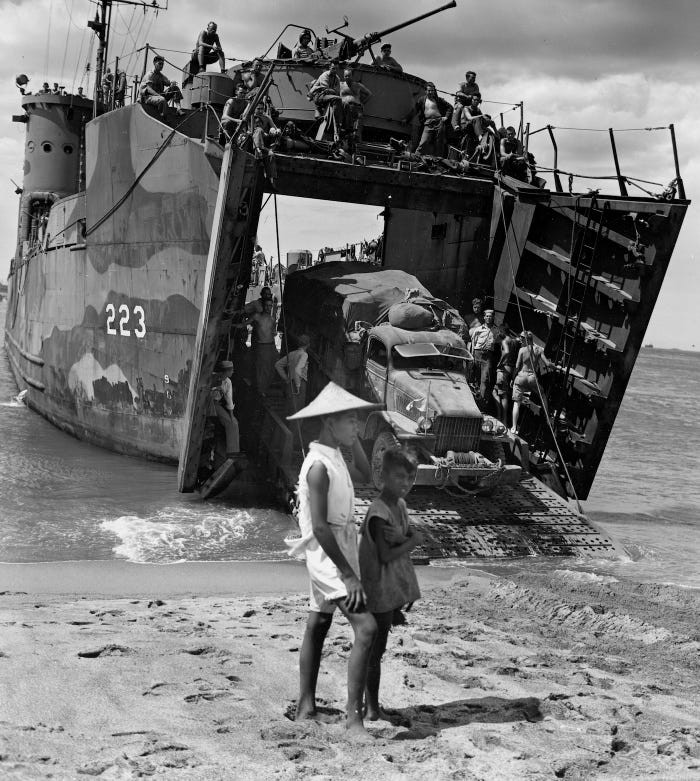 Hàng hậu cần cùng nhân lực được tập kết ở Australia và chuyển tiếp tới đảo Luzon ở Philippines. Vào thời điểm này, Mỹ đã làm chủ toàn bộ mặt trận Thái Bình Dương. Nguồn ảnh: BI.