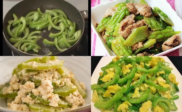 Mướp đắng xào chung với ớt sẽ làm giảm đi vị đắng. Hoặc sau khi mướp đắng thái thành những lát mỏng vừa ăn, bạn có thể bỏ vào chảo đun nóng, không cho dầu. Khi xào chung với món ăn khác, chỉ cần cho mướp đắng đã chín vào trộn đều, nêm gia vị vừa ăn là được.