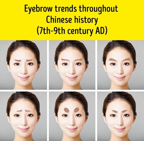 Với người Trung Quốc, việc nhổ lông mày và vẽ lại chúng là xu hướng làm đẹp rất phổ biến. Hình dáng lông mày mới sẽ rất kỳ lạ: tròn xoe, thẳng bất thường hoặc gợn sóng.