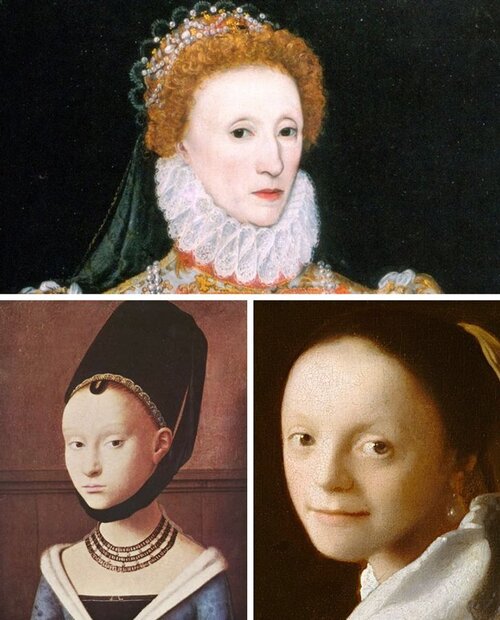 Người ta cho rằng thời trung cổ mọi người hay bị bệnh còi xương dẫn đến rụng tóc. Một số người đã tận dụng ‘bi kịch’ đó và tạo ra vẻ ngoài hợp thời trang, vậy là những người khác học tập theo. Họ bắt đầu cạo tóc ở trán, nhổ lông mày và lông mi.