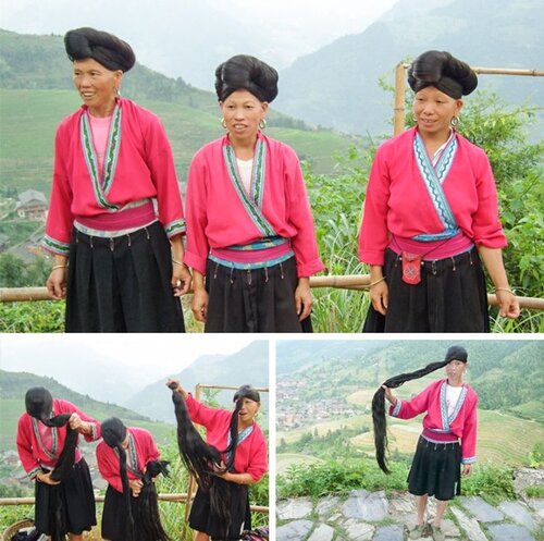 Ở làng Huangluo Trung Quốc có rất nhiều phụ nữ để tóc dài đến gót chân. Họ chỉ cắt tóc trong một nghi thức bắt đầu vào năm 16 tuổi.
