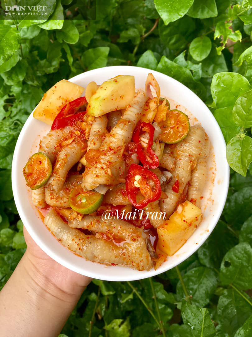 Với món chân gà sốt Thái, sự kết hợp giữa chân gà, xoài xanh cùng nước xốt đậm đà đem lại cảm giác vị cay, chua, ngọt hòa quyện ngay đầu lưỡi đầy thú vị.