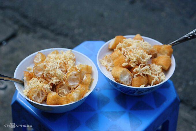 Quẩy nhỏ bằng 2 ngón tay, có vị ngọt nhẹ, xốp và dai và thơm mùi vừng. Những chiếc quẩy nóng hổi, thơm lừng khiến du khách có thể nhanh chóng ăn hết một túi quẩy trong thời tiết mát mẻ này. Quẩy được bán với giá 1000 - 2000 đồng/ cái. Bạn có thể mua tại các địa chỉ như 20 Nguyễn Tuân, 210 Quan Nhân, ngõ 85 phố 8/3 Quỳnh Mai... . Ảnh: Chubehanoi