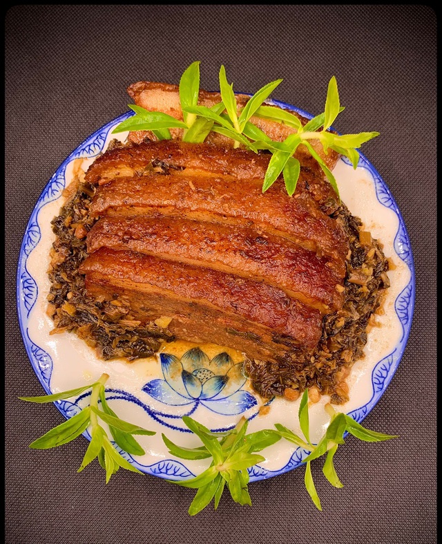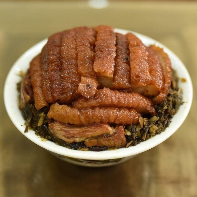 Thoạt nhìn khâu nhục khá giống món thịt kho tàu nhưng đây lại là món ăn được chế biến rất kỳ công. Ảnh: Hoa Kiều