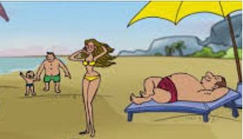 Chú bé được bố mẹ đưa đi tắm biển. Đến bãi tắm, thấy một chị có bộ ngực đồ sộ, chú hỏi: “Sao của chị kia to vậy?”.