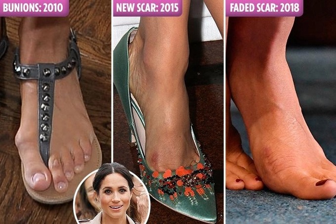 Theo công thức tỷ lệ vàng Phi (1/1.618) của người Hy Lạp, đôi chân của Meghan Markle đạt đến 95% tiêu chuẩn nhưng cũng vướng tin đồn đã nhờ cậy dao kéo.