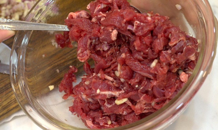 Thịt bò bạn để vào ngăn đông tủ lạnh khoảng 30 phút cho hơi cứng lại, sau đó lấy ra cắt thật mỏng. Ướp thịt bò với 2 thìa cà phê dầu hào, 1 thìa cà phê bột nêm, 1/2 thìa cà phê tiêu xay, một nửa chỗ hành tỏi băm nhỏ. Ướp thịt bò khoảng 20-30 phút để thịt bò thấm gia vị.